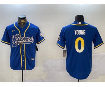 Men's Los Angeles Rams #0 Byron Young Royal Cool Base Stitched Baseball Jerseys