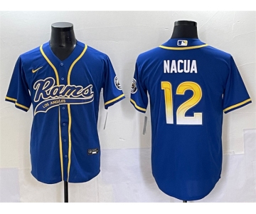 Men's Los Angeles Rams #12 Puka Nacua Royal Cool Base Stitched Baseball Jersey