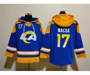 Men's Los Angeles Rams #17 Puka Nacua Blue Ageless Must-Have Lace-Up Pullover Hoodie