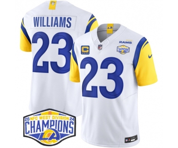 Men's Los Angeles Rams #23 Kyren Williams White 2024 NFC West Champions With 4-Star C Patch F.U.S.E. Vapor Untouchable Stitched Football Jersey