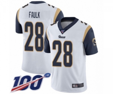 Men's Los Angeles Rams #28 Marshall Faulk White Vapor Untouchable Limited Player 100th Season Football Jersey