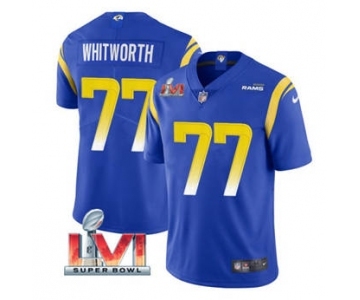 Men's Los Angeles Rams #77 Andrew Whitworth Royal 2022 Super Bowl LVI Vapor Limited Stitched Jersey