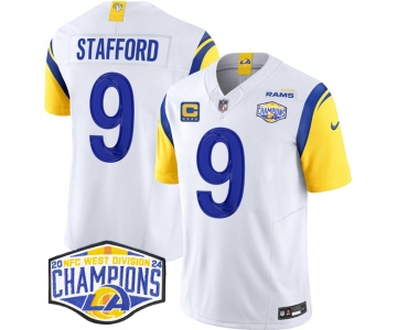 Men's Los Angeles Rams #9 Matthew Stafford White 2024 NFC West Champions With 4-Star C Patch F.U.S.E. Vapor Untouchable Stitched Football Jersey