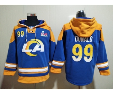 Men's Los Angeles Rams #99 Aaron Donald 2022 Royal Super Bowl LVI Champions Pullover Hoodie
