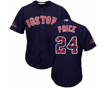 Men's Majestic Boston Red Sox #24 David Price Authentic Navy Blue Team Logo Fashion Cool Base 2018 World Series Champions MLB Jersey