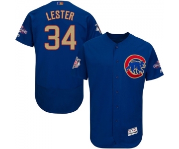 Men's Majestic Chicago Cubs #34 Jon Lester Authentic Royal Blue 2017 Gold Champion Flex Base MLB Jersey