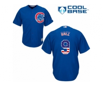 Men's Majestic Chicago Cubs #9 Javier Baez Authentic Royal Blue USA Flag Fasion MLB Jersey