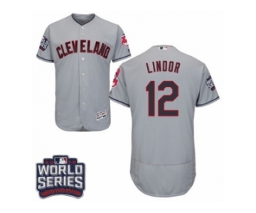 Men's Majestic Cleveland Indians #12 Francisco Lindor Grey 2016 World Series Bound Flexbase Authentic Collection MLB Jersey