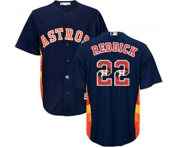 Men's Majestic Houston Astros #22 Josh Reddick Authentic Navy Blue Team Logo Fashion Cool Base MLB Jersey
