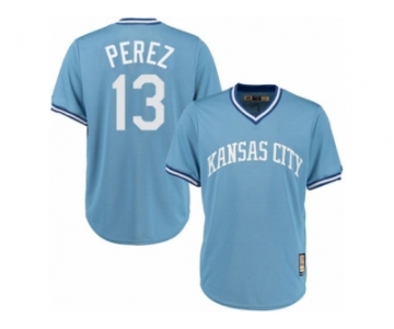 Men's Majestic Kansas City Royals #13 Salvador Perez Replica Light Blue Cooperstown MLB Jersey