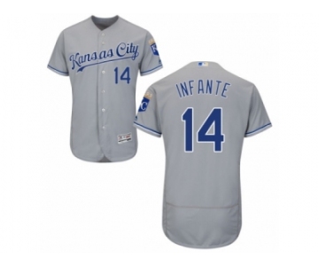 Men's Majestic Kansas City Royals #14 Omar Infante Grey Flexbase Authentic Collection MLB Jersey