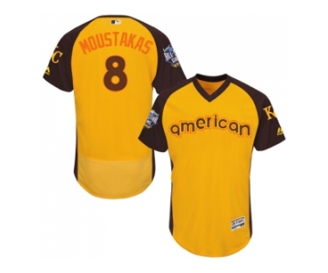 Men's Majestic Kansas City Royals #8 Mike Moustakas Yellow 2016 All-Star American League BP Authentic Collection Flex Base MLB Jersey