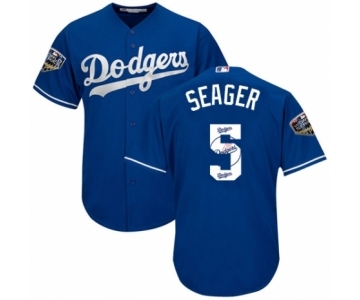Men's Majestic Los Angeles Dodgers #5 Corey Seager Authentic Royal Blue Team Logo Fashion Cool Base 2018 World Series MLB Jersey