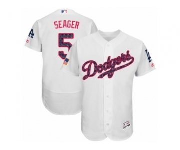 Your Position: Home>MLB Jerseys>Los Angeles Dodgers>Men>Men's Majestic Los Angeles Dodgers #5 Corey Seager Authentic White Stars & Stripes Authentic Collection Flex Base MLB Jersey