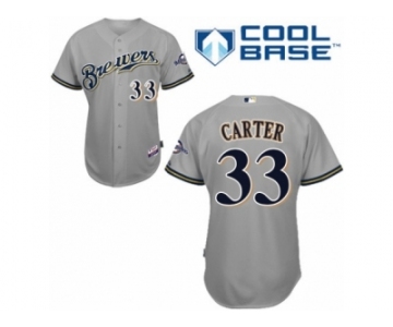 Men's Majestic Milwaukee Brewers #33 Chris Carter Authentic Grey Road Cool Base MLB Jersey