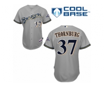 Your Position: Home>MLB Jerseys>Milwaukee Brewers>Men>Men's Majestic Milwaukee Brewers #37 Tyler Thornburg Replica Grey Road Cool Base MLB Jersey