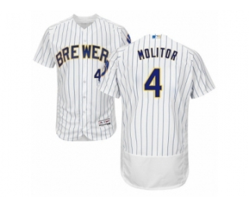 Men's Majestic Milwaukee Brewers #4 Paul Molitor White Flexbase Authentic Collection MLB Jersey
