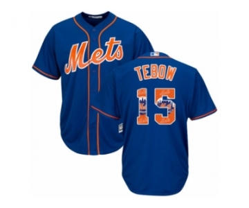 Men's Majestic New York Mets #15 Tim Tebow Authentic Royal Blue Team Logo Fashion Cool Base MLB Jersey
