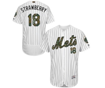 Men's Majestic New York Mets #18 Darryl Strawberry Authentic White 2016 Memorial Day Fashion Flex Base MLB Jersey