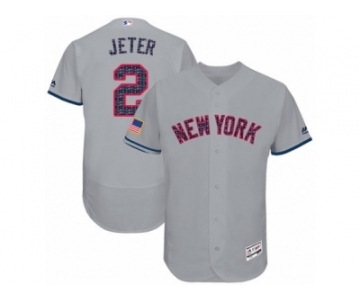 Men's Majestic New York Yankees #2 Derek Jeter Grey Stars & Stripes Authentic Collection Flex Base MLB Jersey