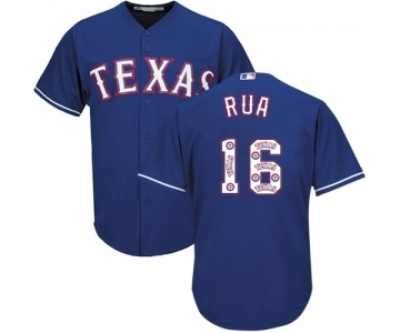 Men's Majestic Texas Rangers #16 Ryan Rua Authentic Royal Blue Team Logo Fashion Cool Base MLB Jersey