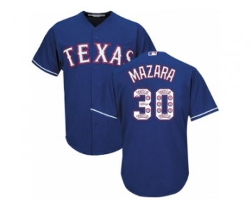 Men's Majestic Texas Rangers #30 Nomar Mazara Authentic Royal Blue Team Logo Fashion Cool Base MLB Jersey