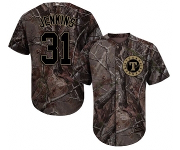 Men's Majestic Texas Rangers #31 Ferguson Jenkins Authentic Camo Realtree Collection Flex Base MLB Jersey