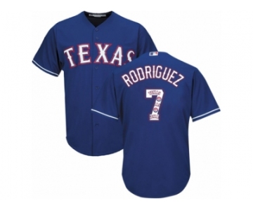 Men's Majestic Texas Rangers #7 Ivan Rodriguez Authentic Royal Blue Team Logo Fashion Cool Base MLB Jersey