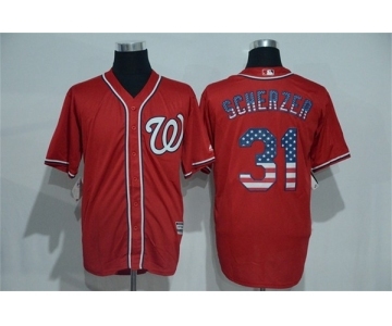 Men's Majestic Washington Nationals #31 Max Scherzer Red USA Flag Fashion MLB Jersey