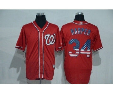 Men's Majestic Washington Nationals #34 Bryce Harper Red USA Flag Fashion MLB Jersey