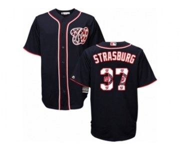 Men's Majestic Washington Nationals #37 Stephen Strasburg Authentic Navy Blue Team Logo Fashion Cool Base MLB Jersey