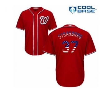Men's Majestic Washington Nationals #37 Stephen Strasburg Replica Red USA Flag Fashion MLB Jersey