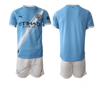 Men's Manchester City Custom 2024-25 Light Blue Home Soccer Jersey Suit