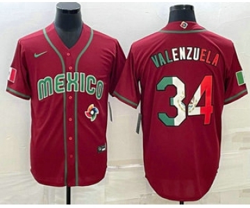 Mens Mexico Baseball #34 Fernando Valenzuela Number 2023 Red Blue World Baseball Classic Stitched Jersey