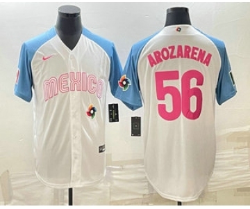 Men's Mexico Baseball #56 Randy Arozarena 2023 White Blue World Classic Stitched Jerseys