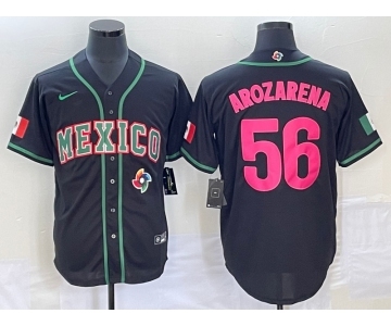 Men's Mexico Baseball #56 Randy Arozarena Number 2023 Black Pink World Classic Stitched Jersey1