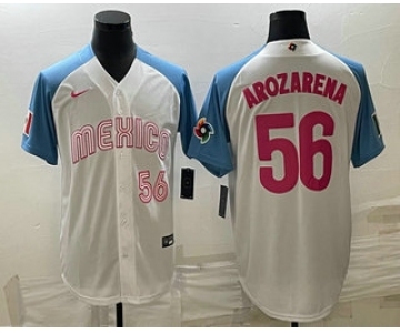 Men's Mexico Baseball #56 Randy Arozarena Number 2023 White Blue World Classic Stitched Jersey