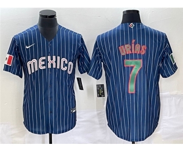 Men's Mexico Baseball #7 Julio Urías 2023 Navy World Baseball Classic Stitched Jersey