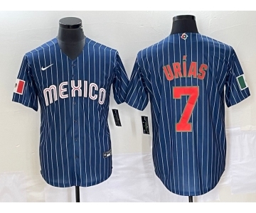 Men's Mexico Baseball #7 Julio Urías 2023 Navy World Baseball Classic Stitched Jersey3