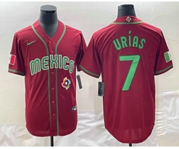 Men's Mexico Baseball #7 Julio Urias 2023 Red Green World Baseball Classic Stitched Jersey