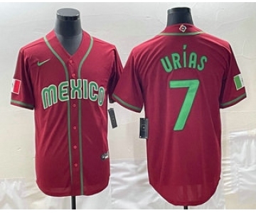 Men's Mexico Baseball #7 Julio Urias 2023 Red Green World Baseball Classic Stitched Jerseys