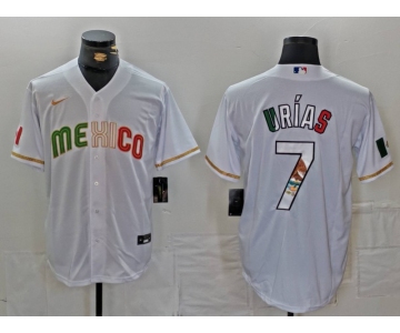 Men's Mexico Baseball #7 Julio Urias 2023 White World Classic Stitched Jerseys