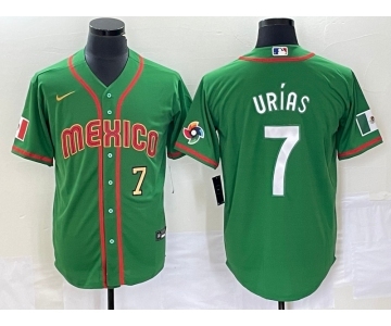 Men's Mexico Baseball #7 Julio Urias Number 2023 Green World Classic Stitched Jersey2