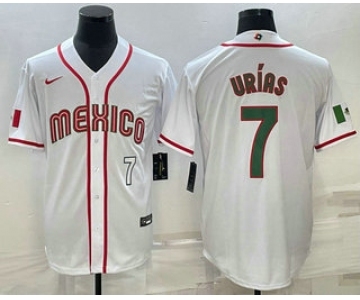 Men's Mexico Baseball #7 Julio Urias 2023 White Blue World Classic Stitched Jersey