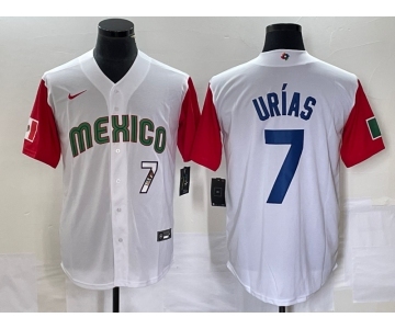 Men's Mexico Baseball #7 Julio Urias Number 2023 White Red World Classic Stitched Jersey