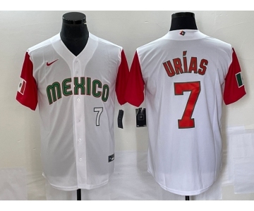 Men's Mexico Baseball #7 Julio Urias Number 2023 White Red World Classic Stitched Jersey20