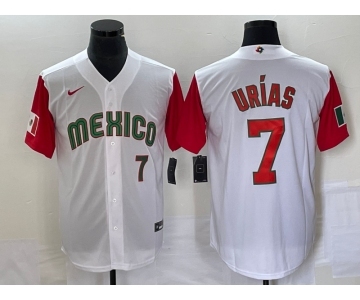 Men's Mexico Baseball #7 Julio Urias Number 2023 White Red World Classic Stitched Jersey21