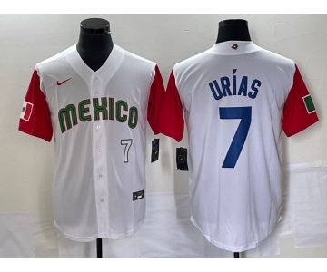 Men's Mexico Baseball #7 Julio Urias Number 2023 White Red World Classic Stitched Jersey2