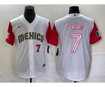 Men's Mexico Baseball #7 Julio Urias Number 2023 White Red World Classic Stitched Jersey 44