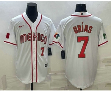Men's Mexico Baseball #7 Julio Urias Number 2023 White World Baseball Classic Stitched Jersey2
